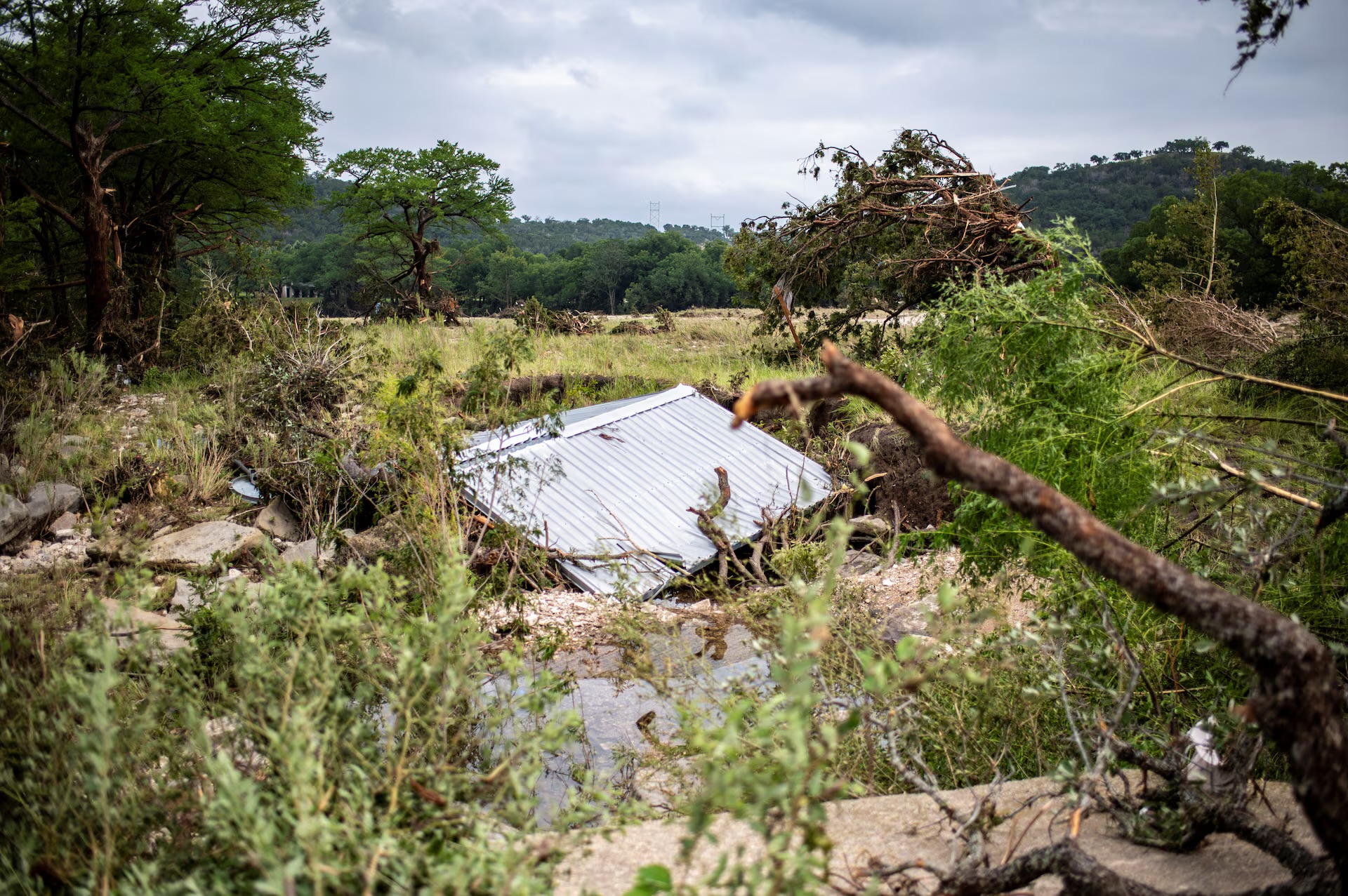The roof of a building is seen at an affected area after a deadly flooding in Kerr County, Texas, U.S., July 5, 2025. REUTERS/Sergio Flores