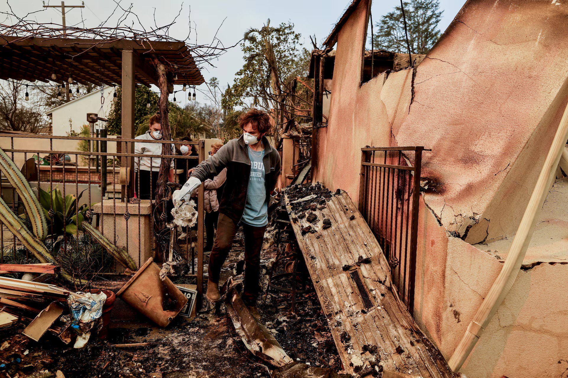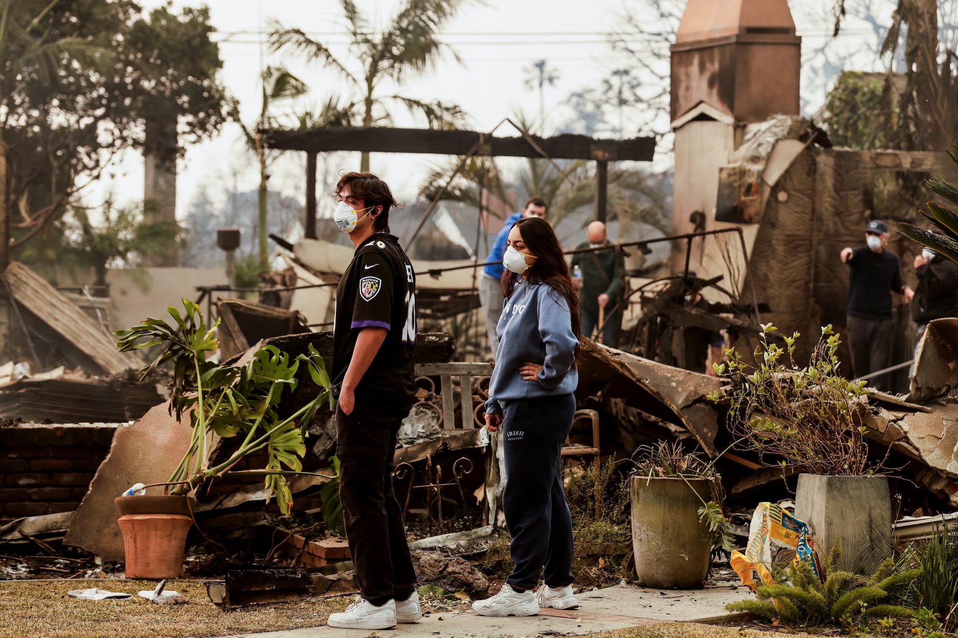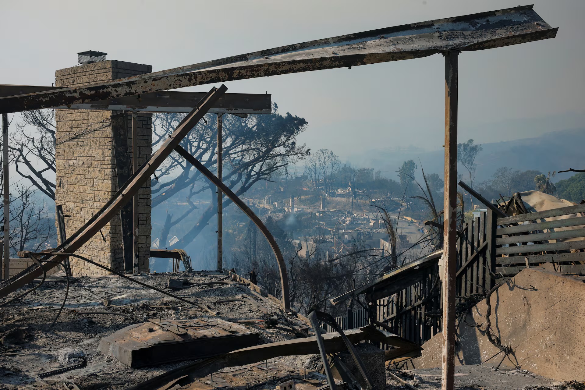 Some Pacific Palisades residents ventured back to areas the fire had already swept through, where brick chimneys were left looming over charred waste and burnt-out vehicles.