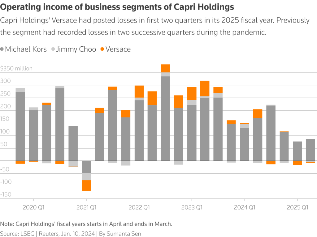 U.S.-listed Capri is struggling with falling sales in a global $400 billion luxury sector where confidence has been eroded by wealthy Chinese cutting their spending and the end of a prolonged boom.